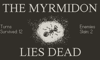 One final detail that I considered as a quick fix to the jam version, and might want to explore after these other fixes get in, is that the player should take damage if they’re standing on a tile when an enemy tries to spawn there. This is obviously to encourage players to not just stick to the walls/corners, and thus it feels like a cheap solution to a bigger problem, but it feels somewhat appropriate to the scenario: the Myrmidon is lost in the fog of war, and just because he can’t see what horrors lurk just beyond his view, doesn’t mean they can’t see him and decide they want a slice!